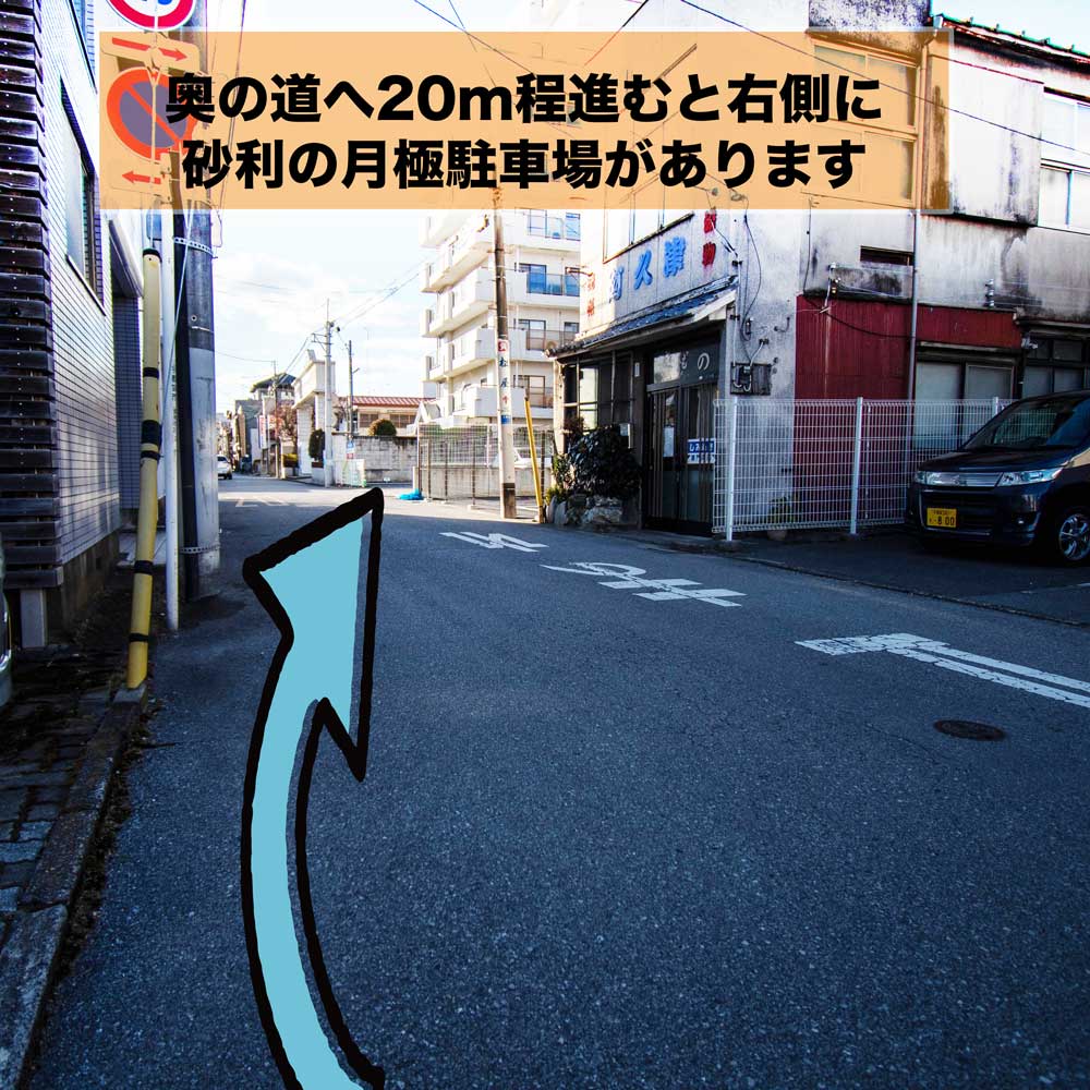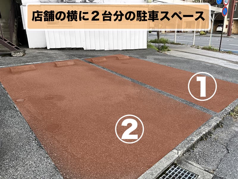 駐車場①、②が空いていない場合はさらに店舗横の道を奥へ20mほど進んで下さい。