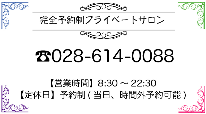 ご予約はお電話、ホットペッパー、公式ラインより受付致します。早朝等の通常営業時間外の予約も出来ますのでお気軽にお問い合わせください◎